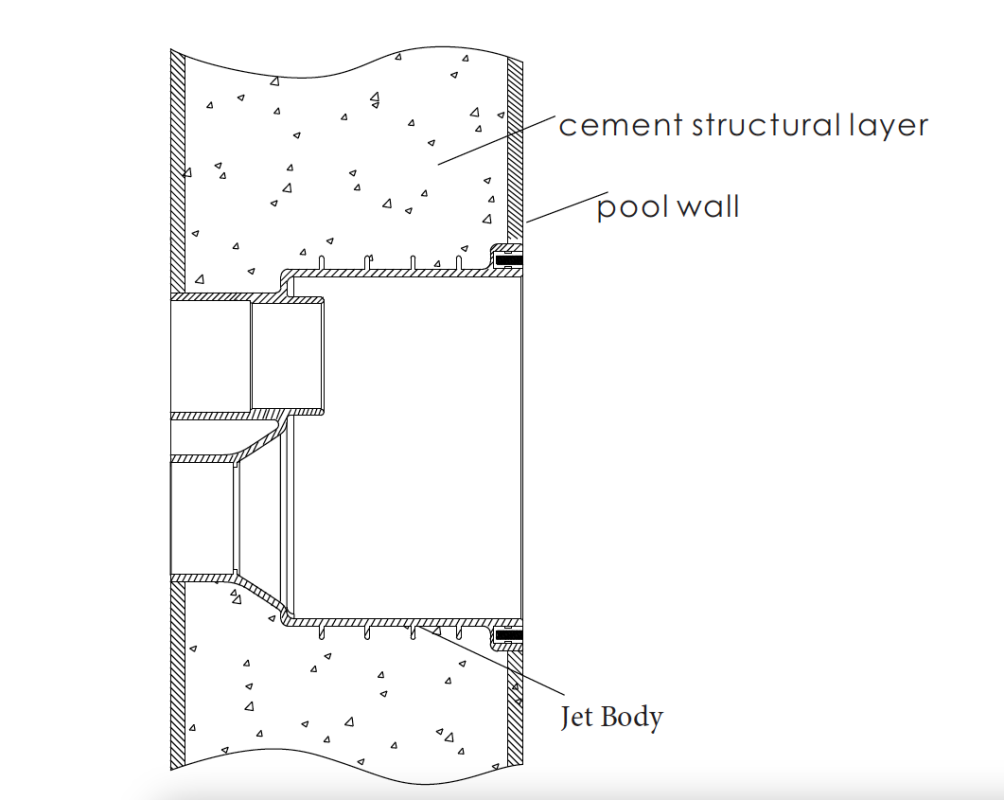 Secondly, the swim jet nozzle should be 250mm or 10″ below the surface. This is the same regardless of the type of construction method you are using on your pool or tub.